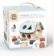 Have fun while developing hand/eye co-ordination with this hammer bench! Tap the six coloured wooden pegs down through the holes with the sturdy hammer to create a flat workbench. Endless fun as a simple turnover of the bench means your little one gets to start all over again! This wooden toy is designed with gently curved edges and comes in our pastel colour palette. This toy is crafted from sustainably sourced wood from FSC® certified forests and coated with non-toxic paint.
