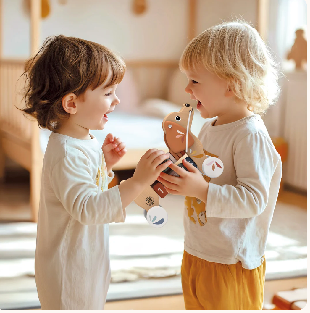 Meet your little one's new best friend, the Puppy Pull Along! Designed to delight and encourage movement, this adorable wooden puppy rolls along wherever your toddler goes, making it the perfect companion for early walkers and adventurers aged 1-3.